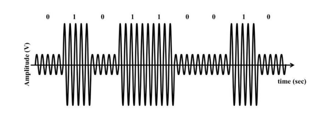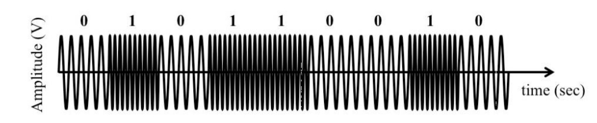 Frequency-shift keying (FSK) is a frequency modulation scheme in which digital information is transmitted through discrete frequency changes (shifts) of a carrier wave. The simplest form of FSK is binary FSK (BFSK), in which carrier wave is shifted to low or high frequency to transmit 0s or 1s.