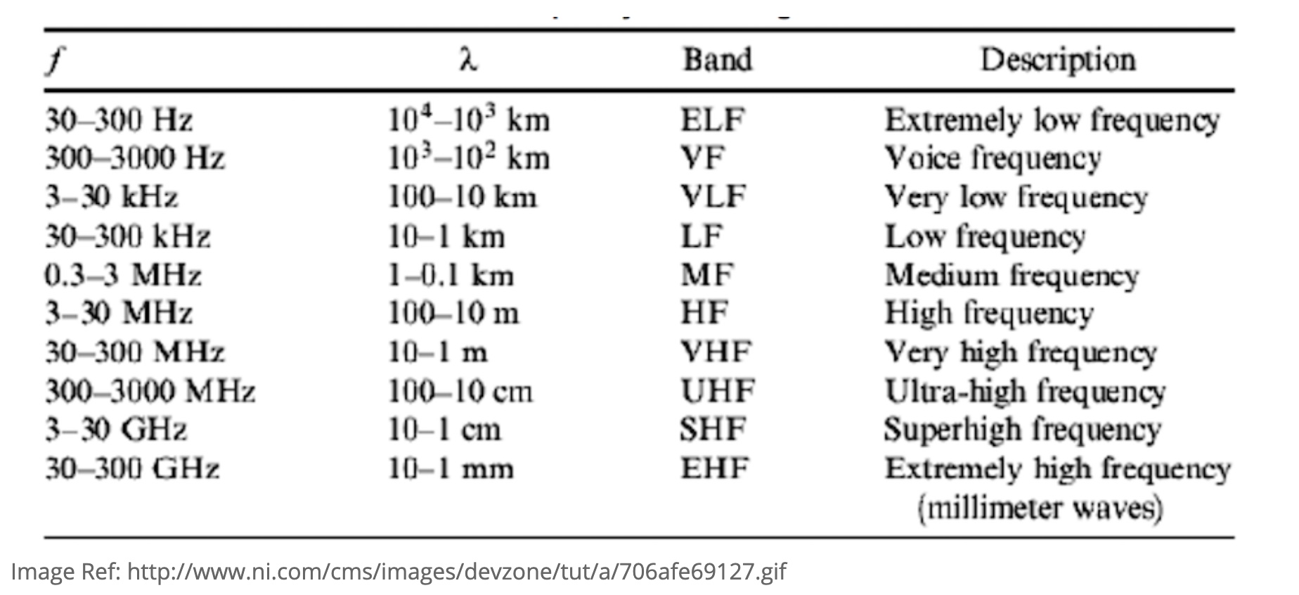 EM waves of frequencies within certain ranges get categorized into so called bands. This picture lists the bands and their frequencies: